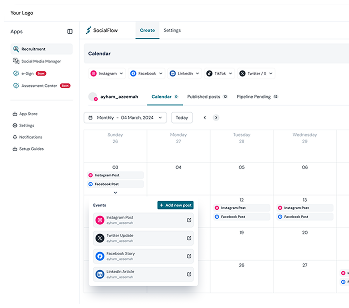 Create and manage job advertisements across major platforms including Facebook, Instagram, SnapChat, Google, YouTube, TikTok, and LinkedIn. Save on additional fees by managing all your social media advertising directly within Flowxtra. | |||||||