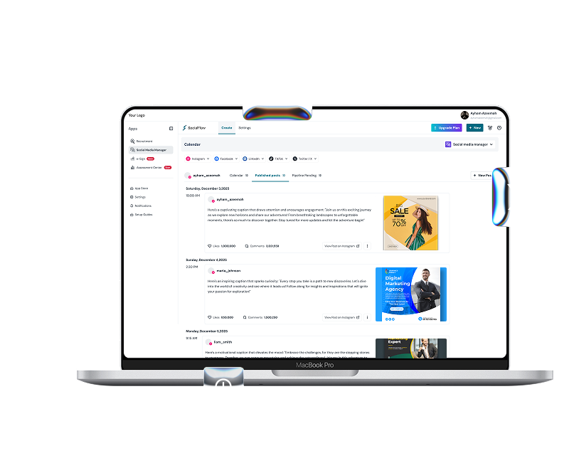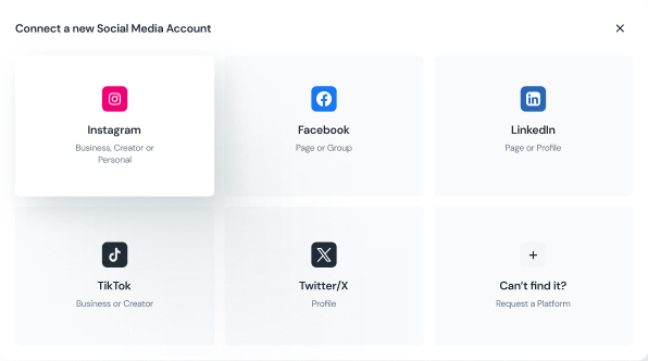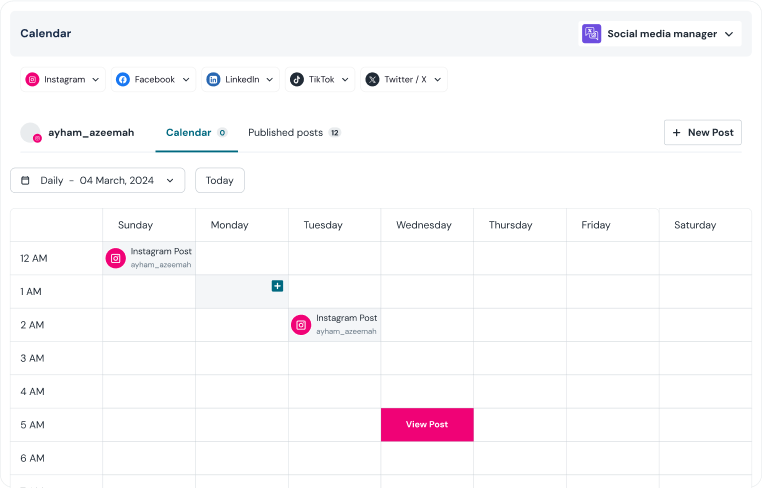 Connect all your social media accounts — Instagram, Facebook, LinkedIn, TikTok, and X — and manage them from one smart dashboard.